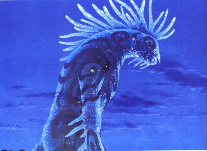 But let’s go back to an image I mentioned earlier: moving mountains. While watching Godzilla, I was struck at how often the creatures disguised themselves as trees or mountains. One memorable set-piece follows a group of soldiers on foot as they scout a towering train bridge. Unbeknownst to them, one of the enemy monsters has concealed itself along a nearby mountain range. The image reminded me of the Forest Spirit from Studio Ghibli’s Princess Mononoke, lumbering along, its silhouette soaring over the treeline.